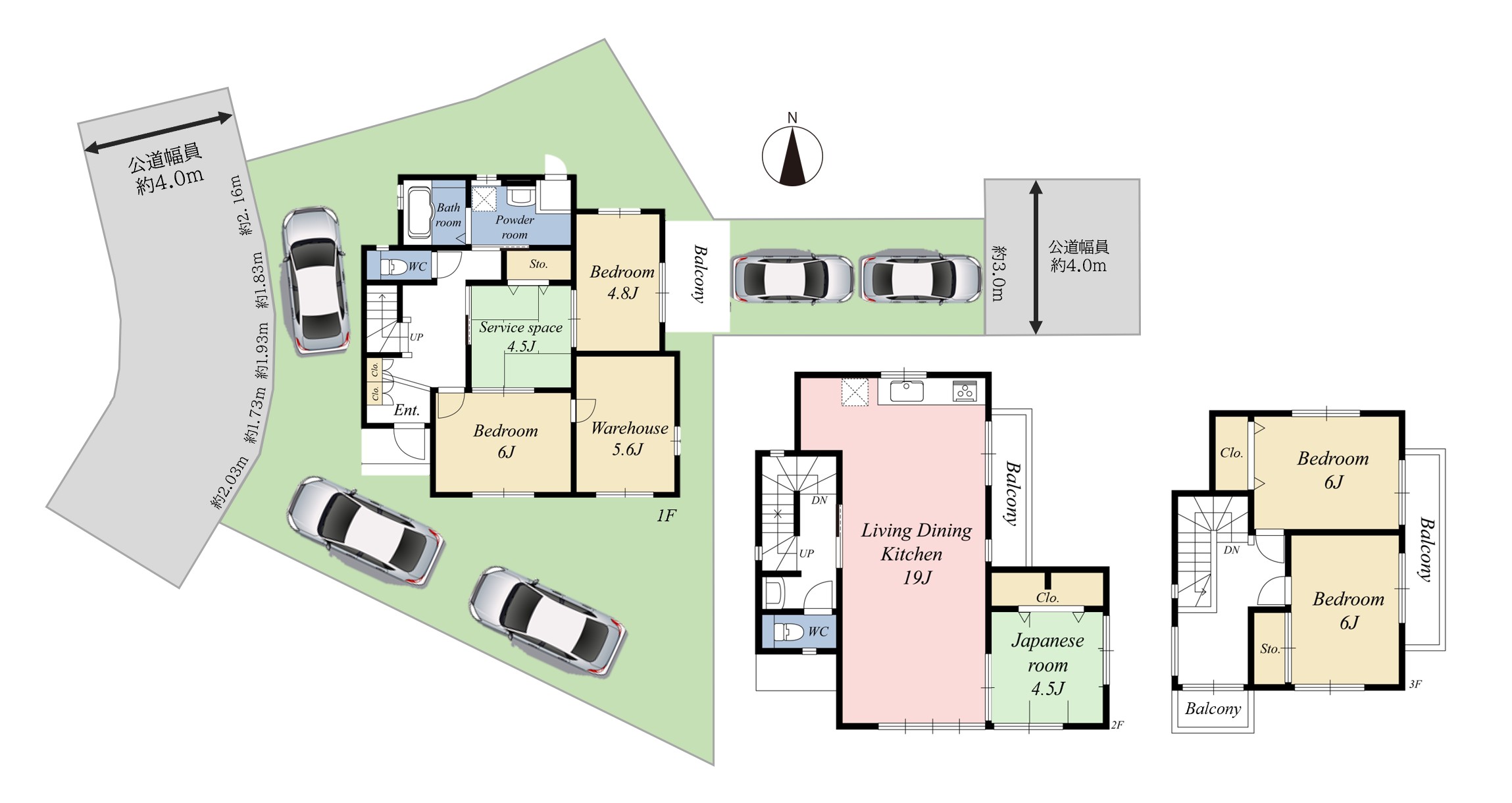 東側、公道、約4.0m 西側、公道、約4.0m |