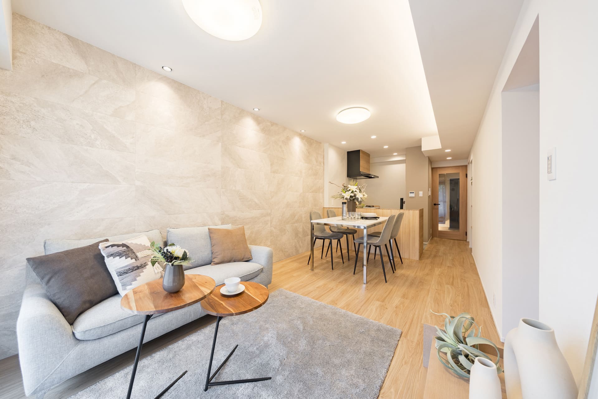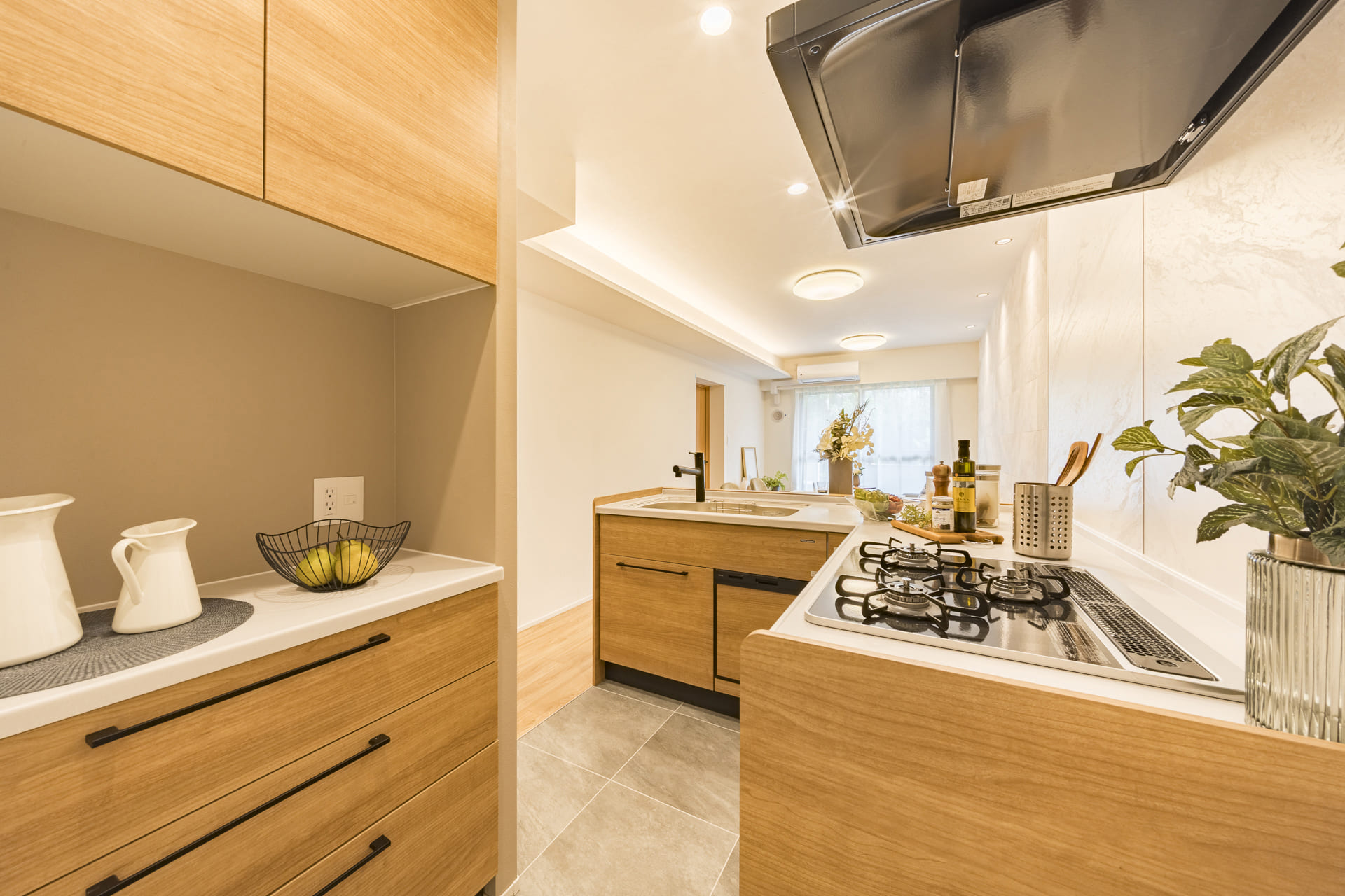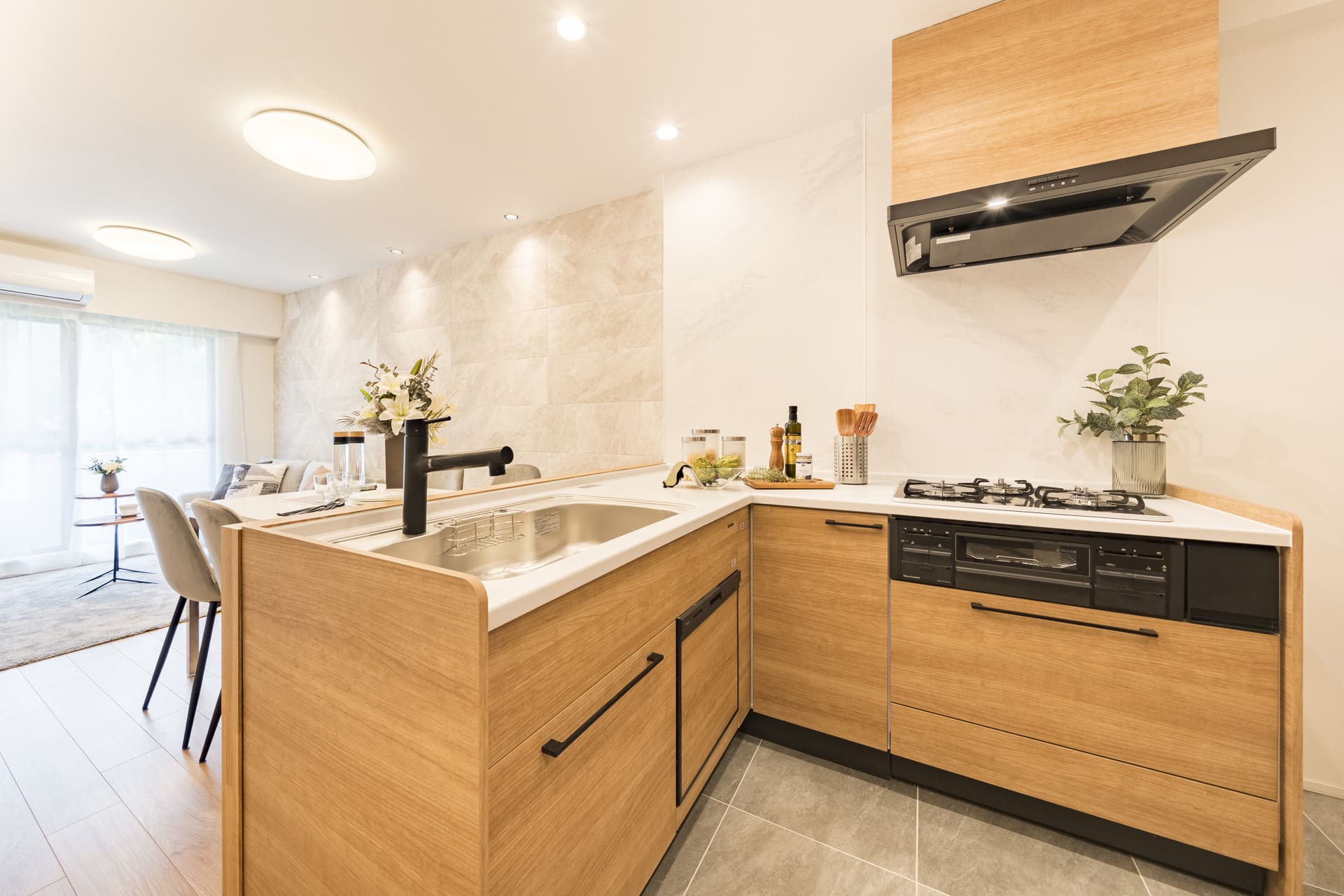 ・フローリング新規貼替・システムキッチン新規交換(食洗器付き)・洗浄便座付きトイレ新規交換・追炊機能付ユニットバス新規交換(浴室乾燥機付)