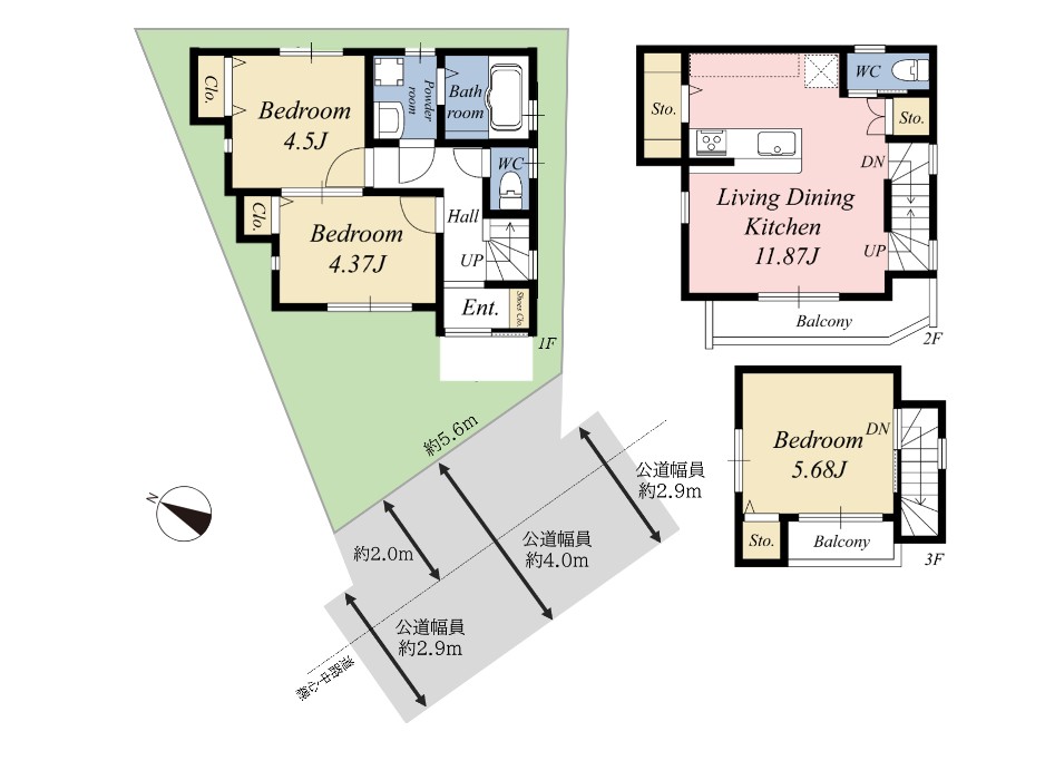 南西側、公道、約2.9m |