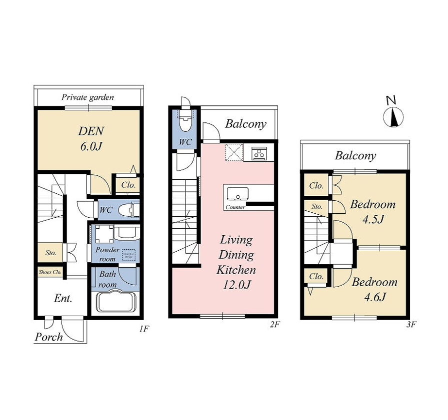 | バルコニー面積 | 7.64㎡ 専用庭面積:2.00㎡ | |