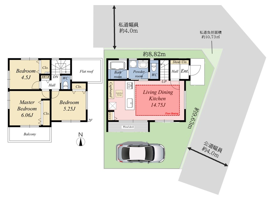 | 接面道路1 | 北側、私道、約4.0m | |