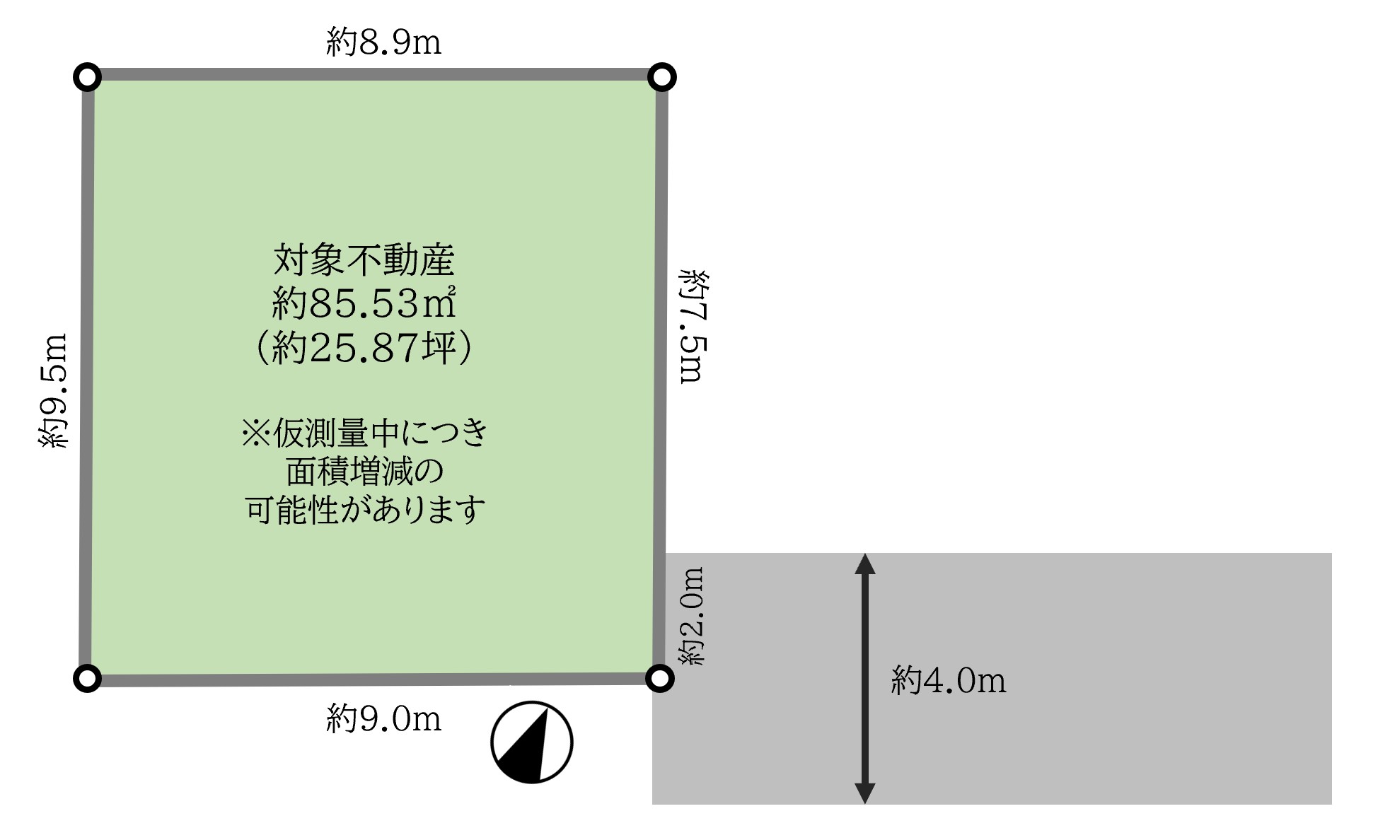 | 接面道路 | 接面道路 東 約4.0m 接道間口 東 約2.0m |