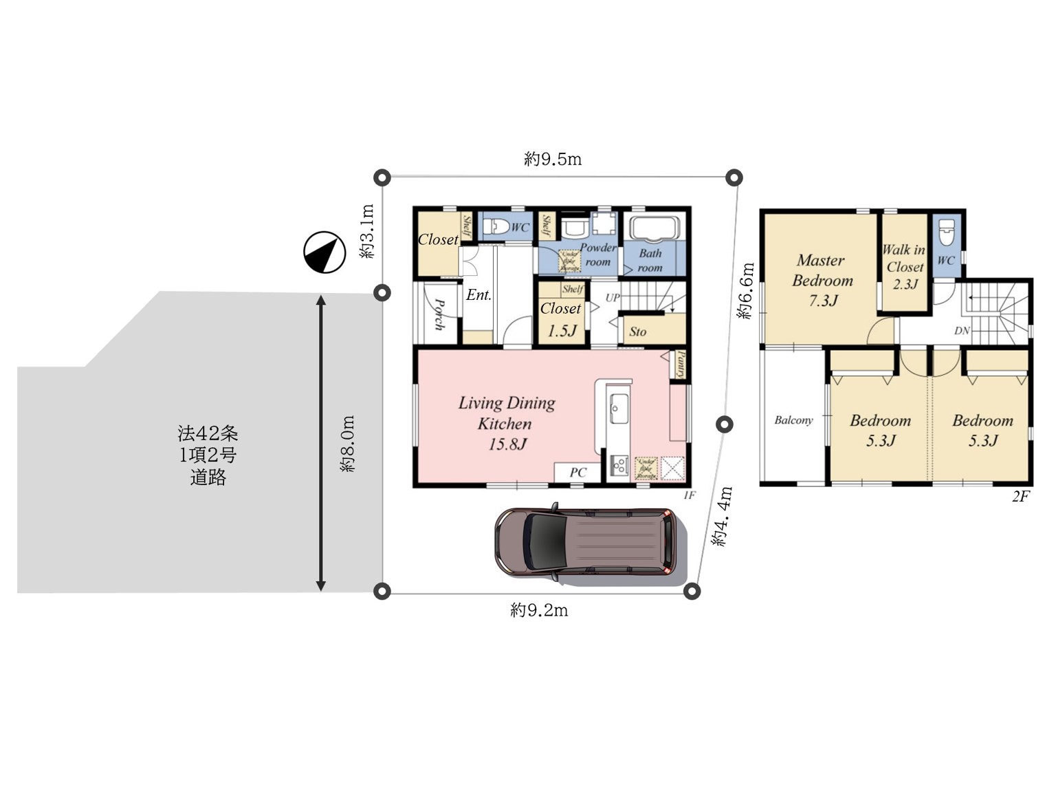 | 建物 | 建物(延床)面積 | 1階 50.79㎡ 2階 44.00㎡ 合計 94.79㎡ (約 28.67坪) |