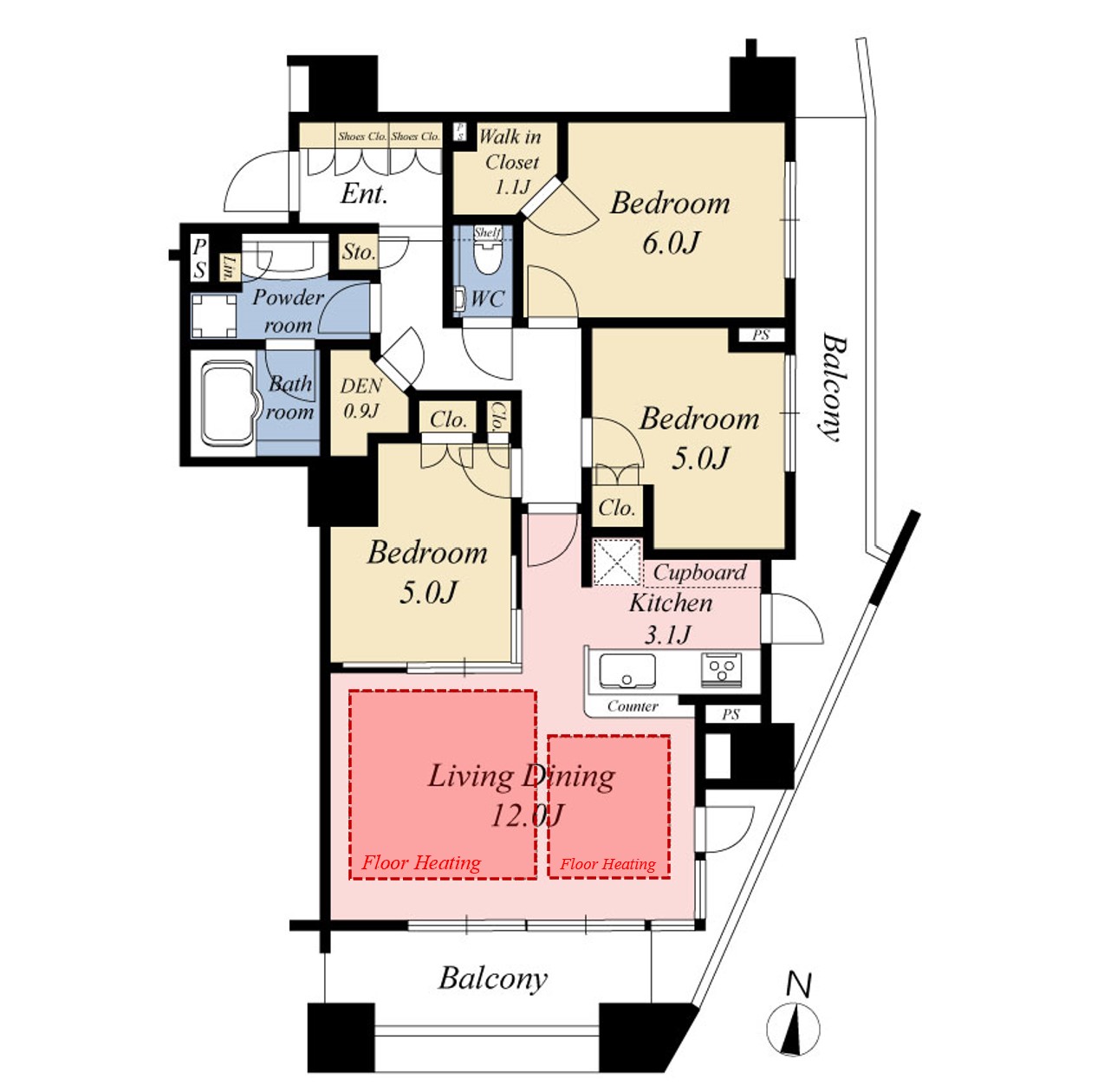 ▪LD部分にはTES式温水床暖房▪南と東の2面バルコニー