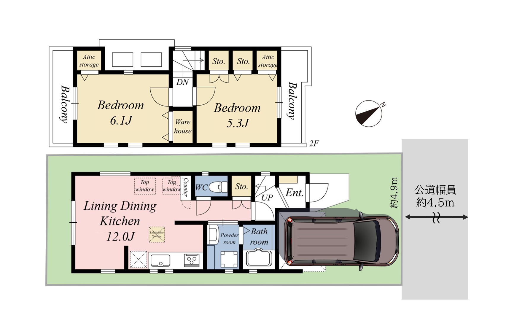 北側、公道、約4.5m |