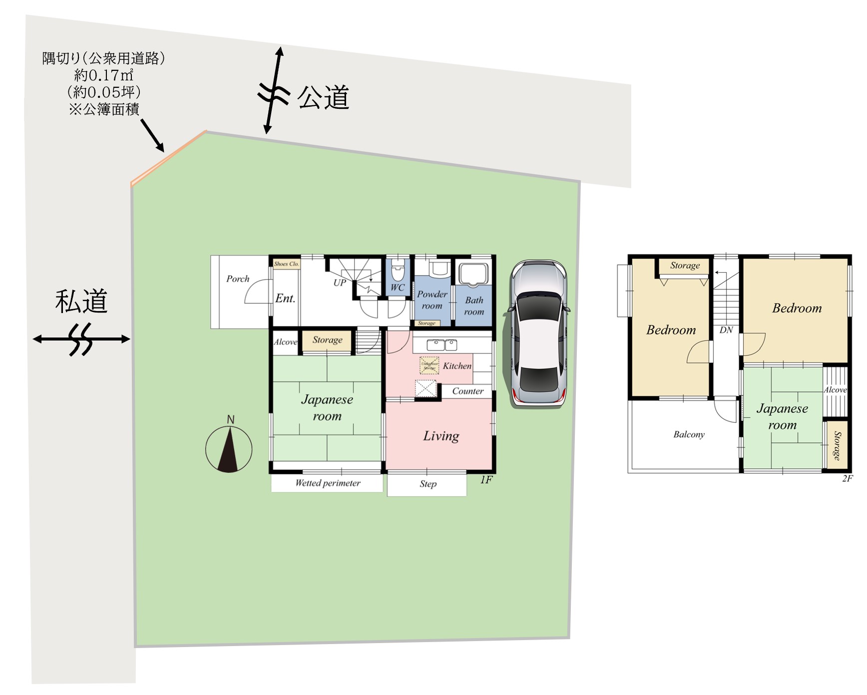 北側、公道 西側、私道 |