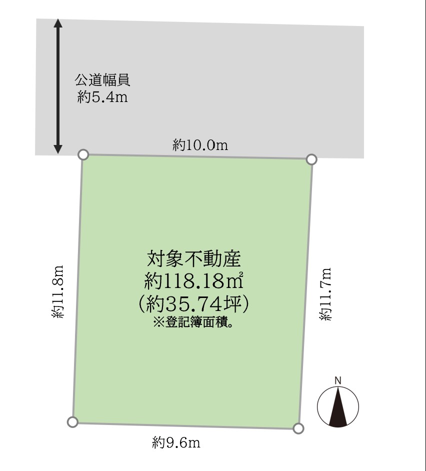 北側、公道、約5.4m |