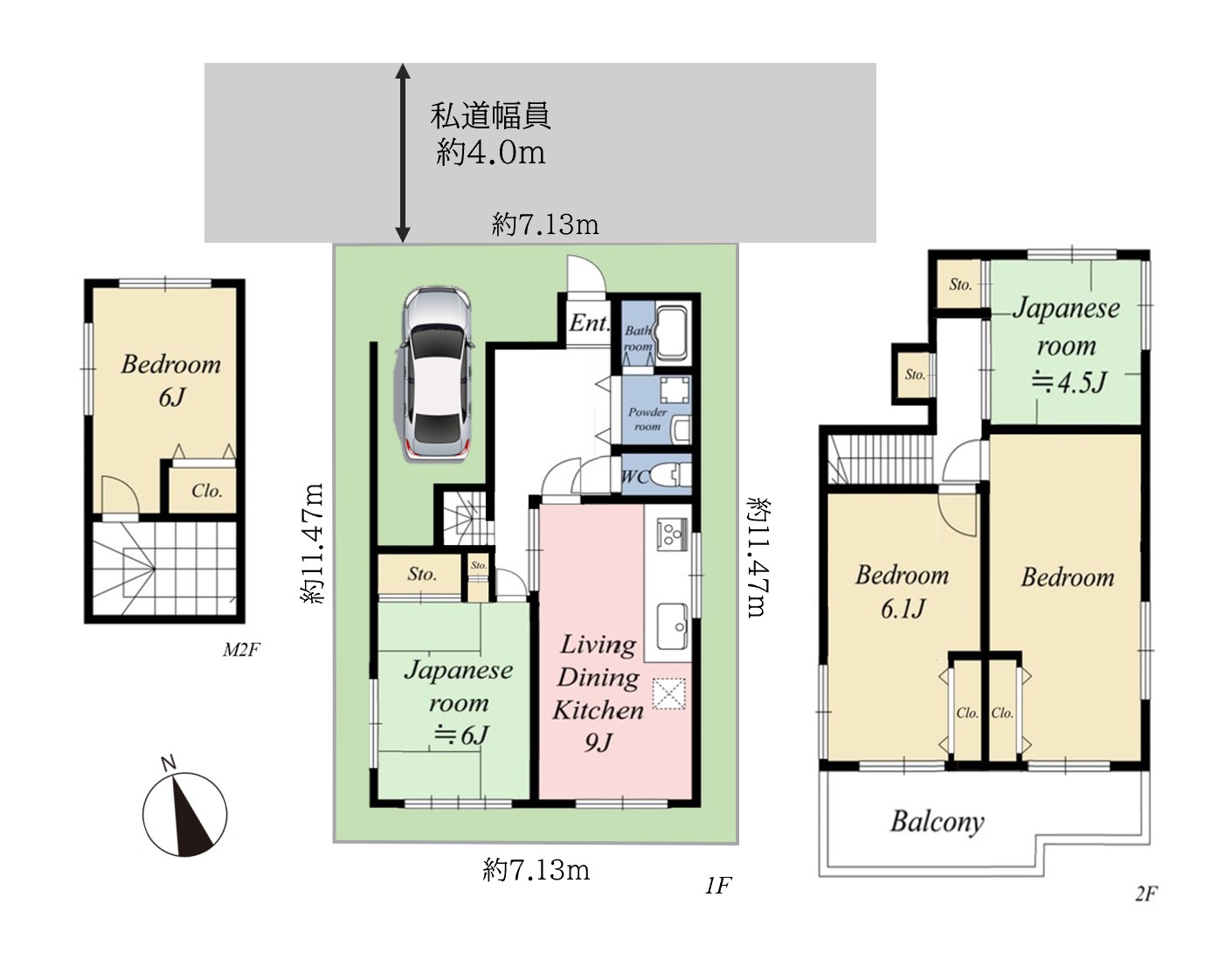 北側、私道、約4.0m |