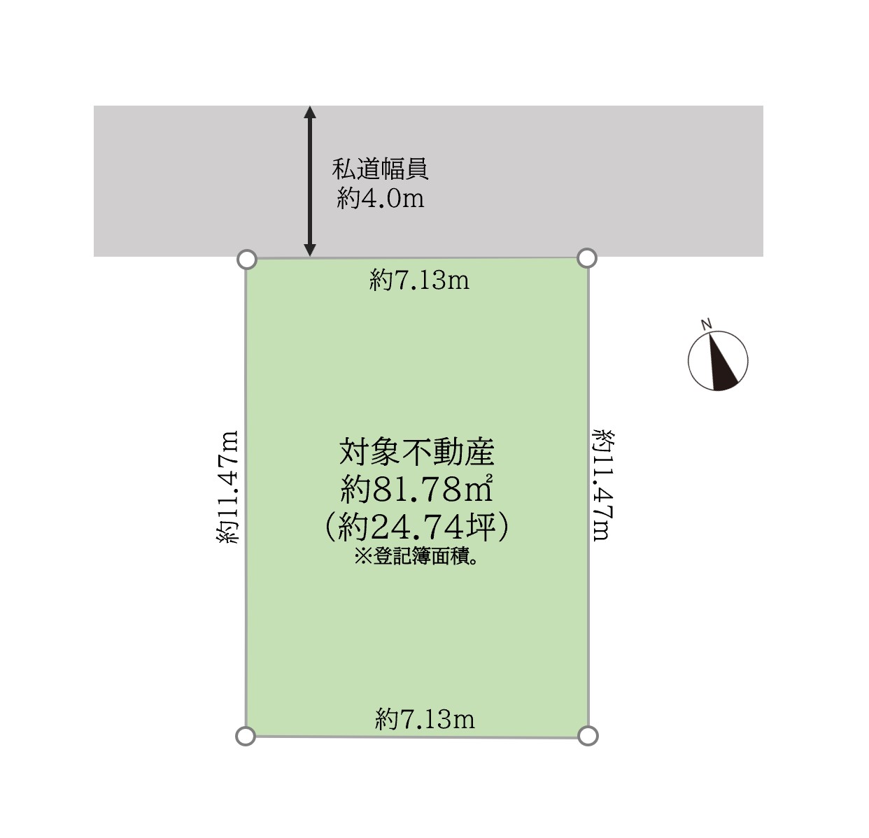 | 接面道路 | 北側、私道、約4.0m | |