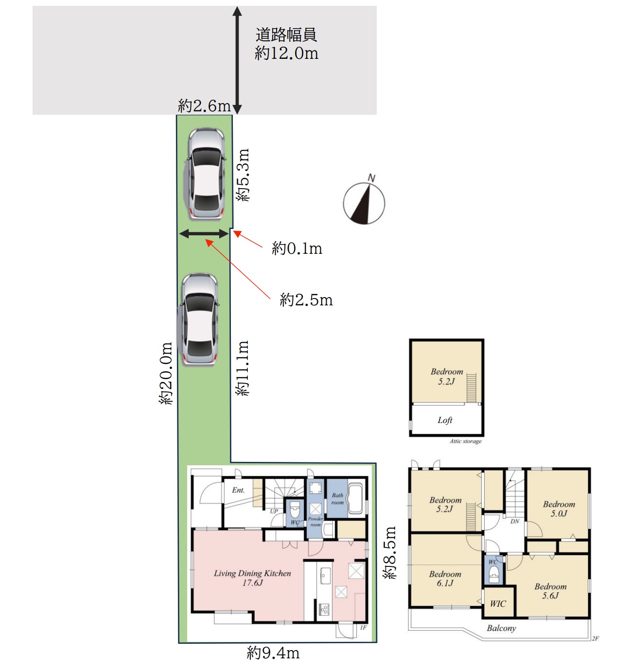 | 接面道路 | 北側、公道、約12.0m | |