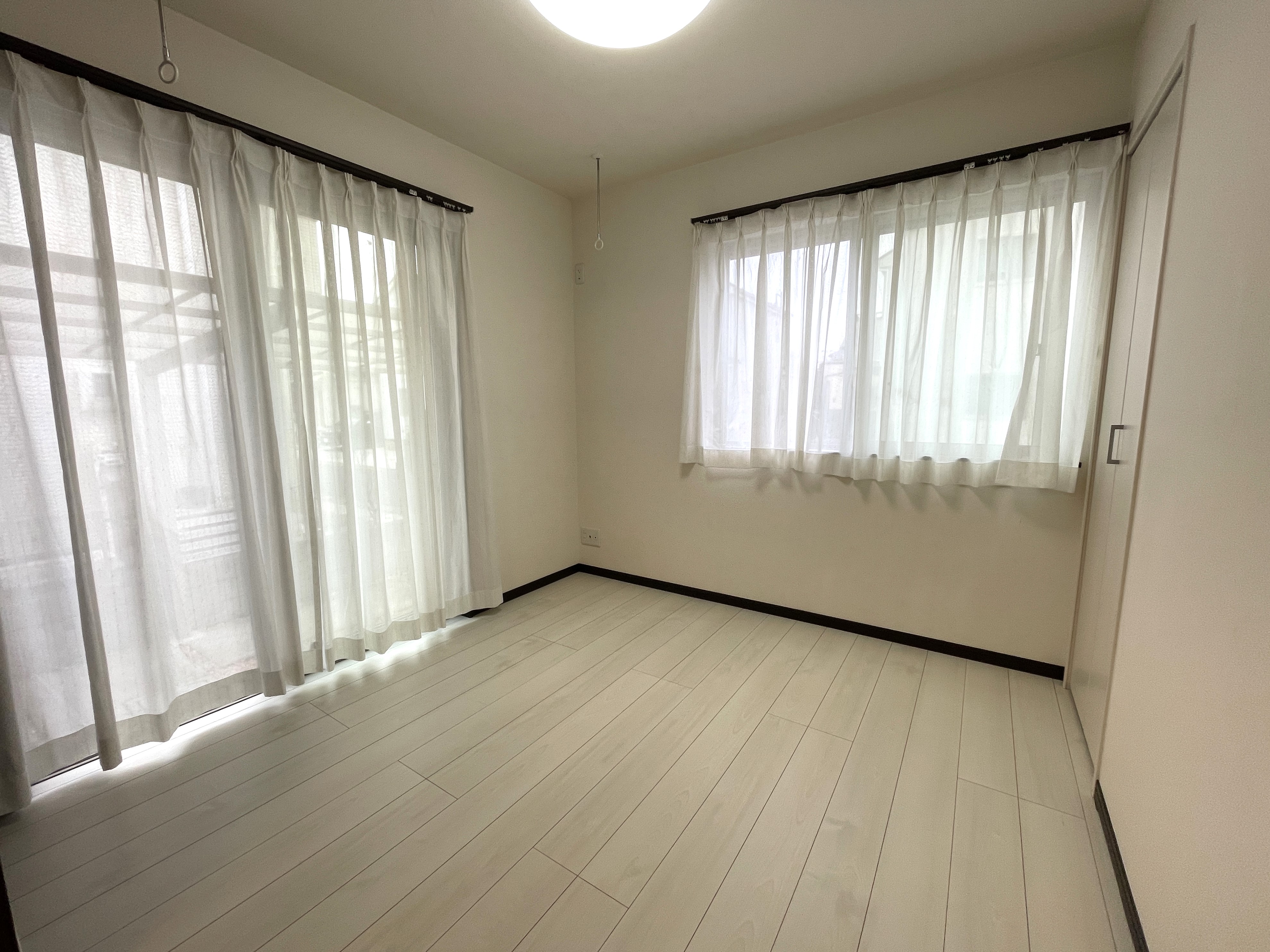 ・南側掃き出し窓にウッドデッキが設置されています。