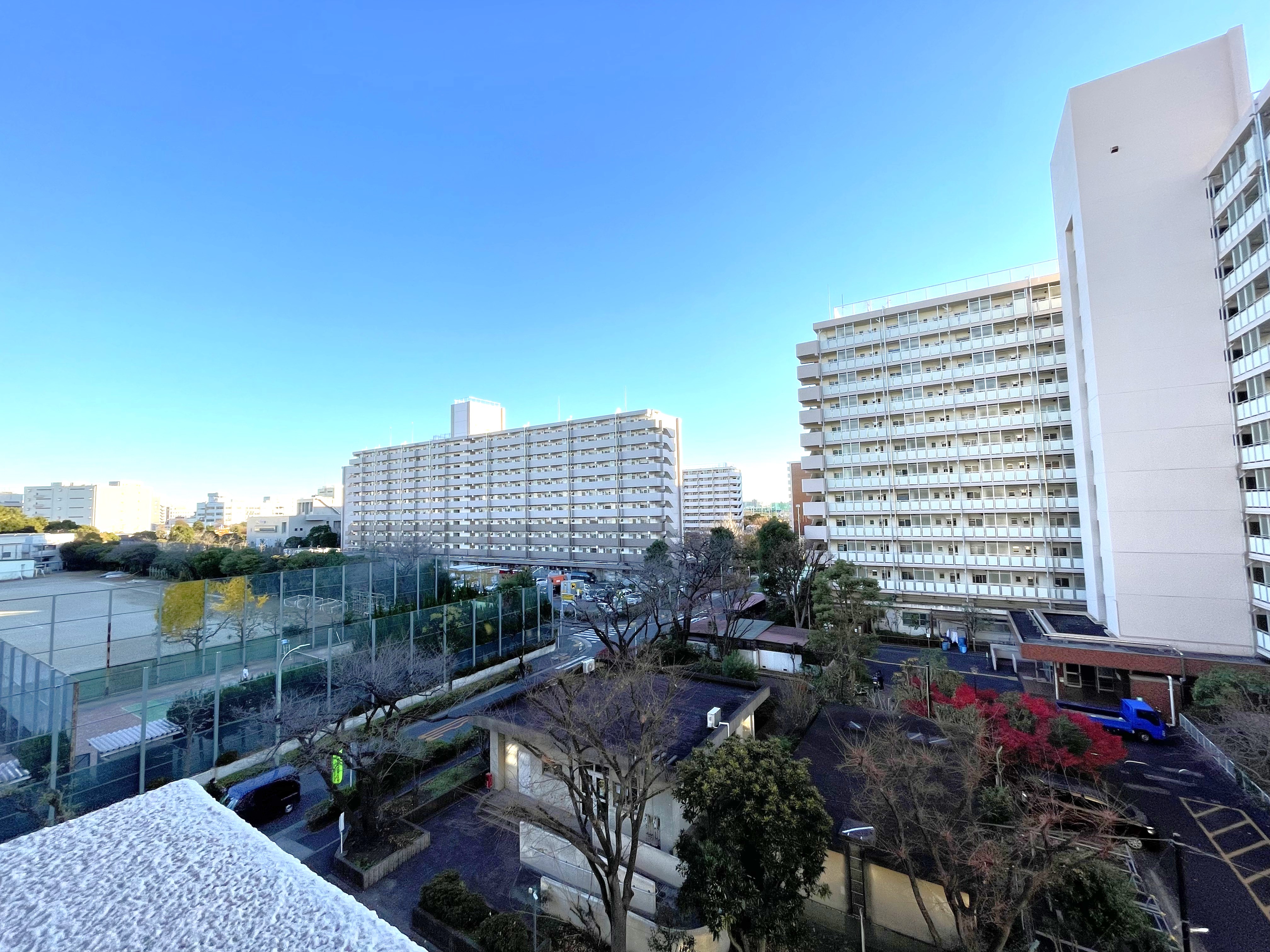 明るい南向きのバルコニー 管理人常駐で安心の管理体制