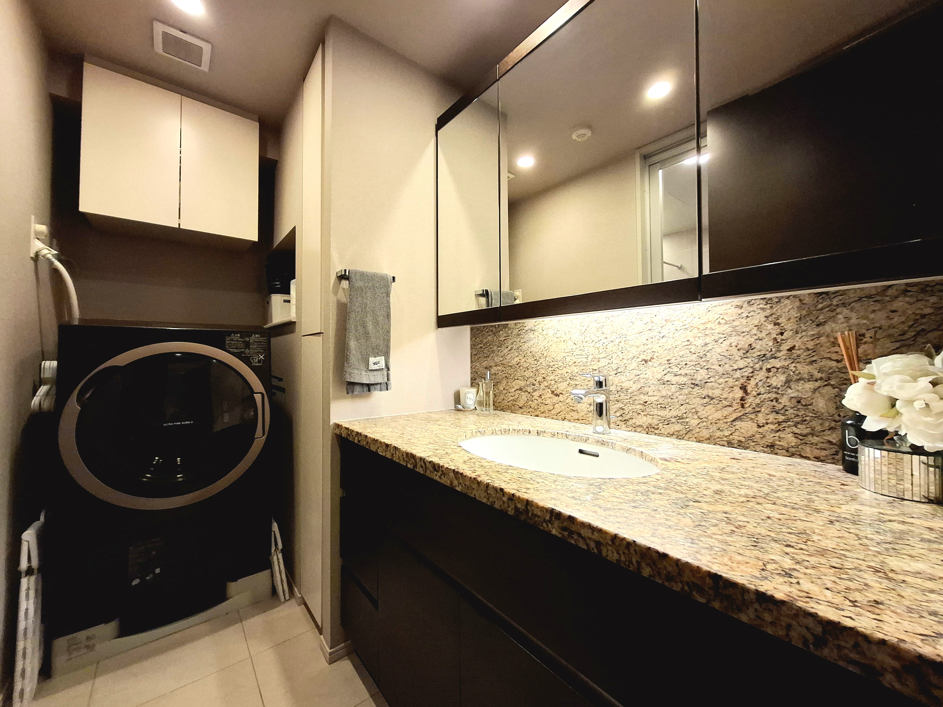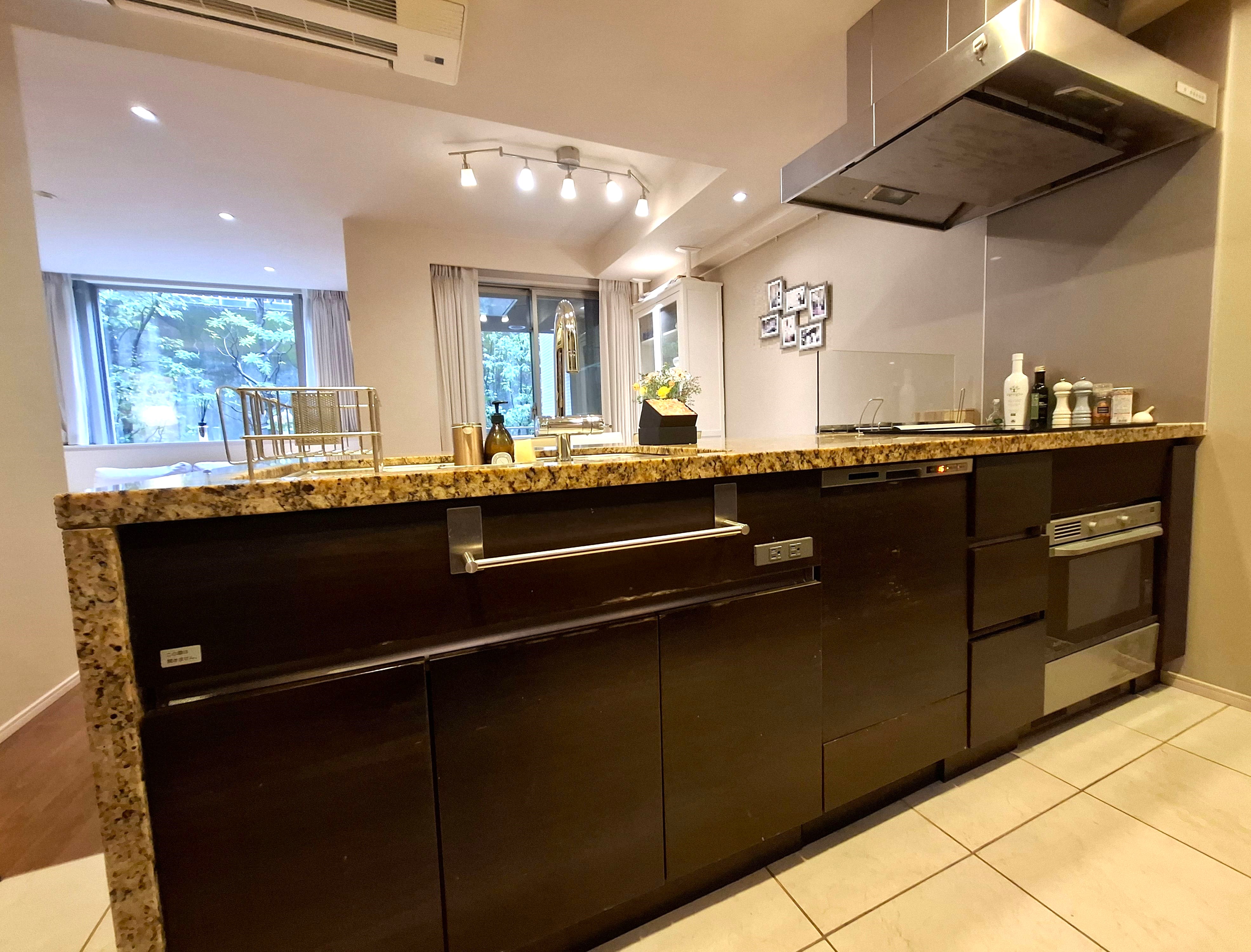 キッチンカウンター天板&洗面台&トイレ手洗いカウンターは天然石を使用 遮音性に配慮された二重床