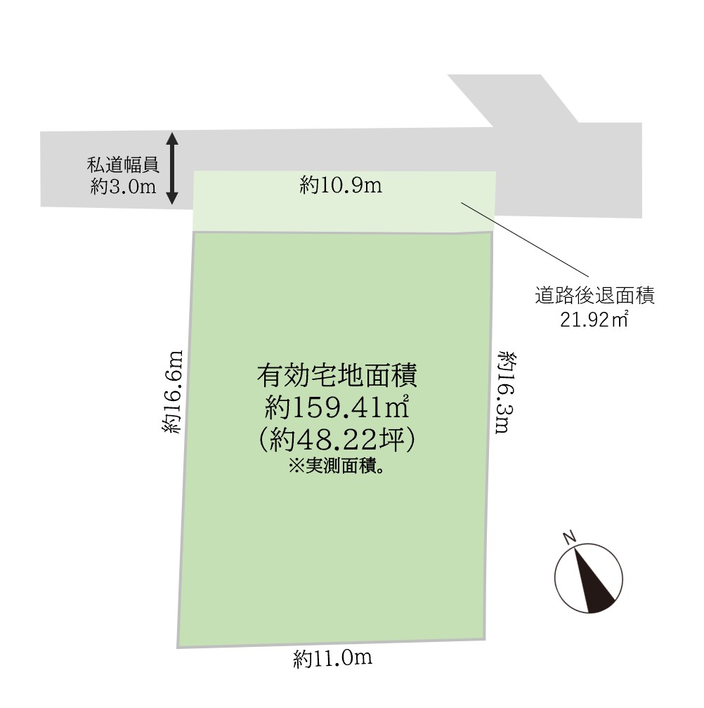 | 有効宅地 | 159.41㎡(約48.22坪) | |