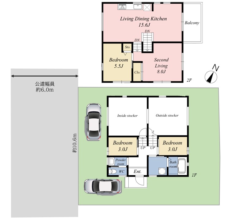 南西側、公道、約6.0m |