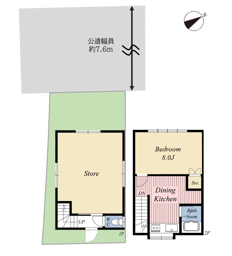 西側、公道、約7.6m |