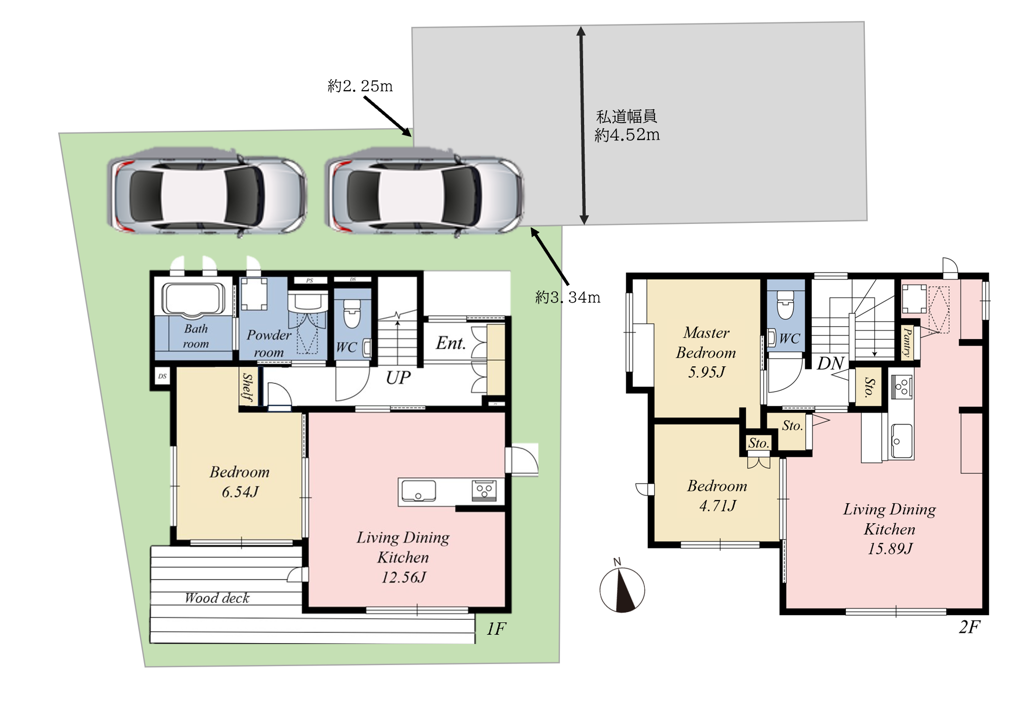 | 接面道路 | 北東側、私道、約4.5m | |